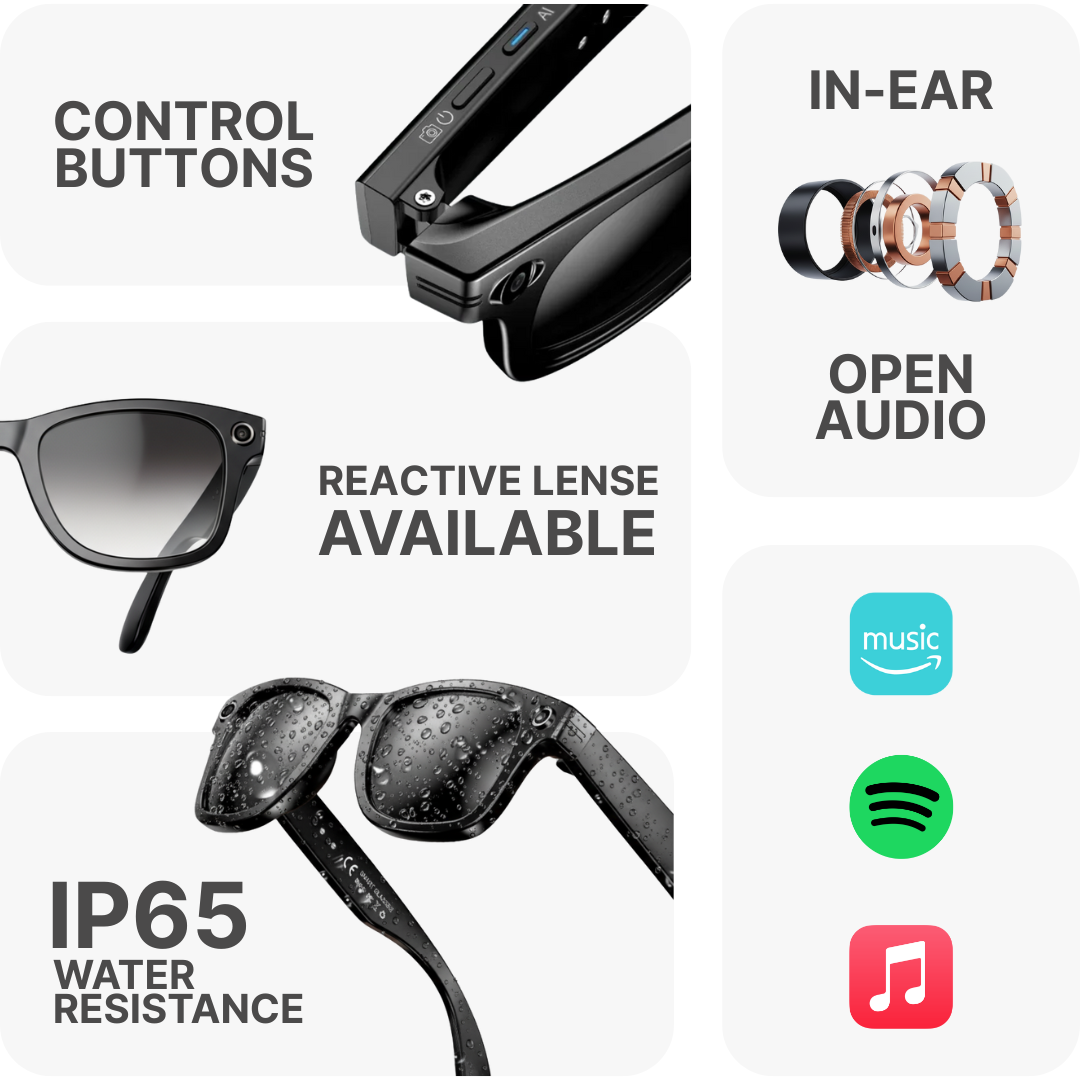 Lumas Vision X combines advanced AI and smart technology - record HD videos, take photos, make calls, listen to music, translate conversations in real time, and use ChatGPT-powered vision that answers what you see - all completely hands-free.